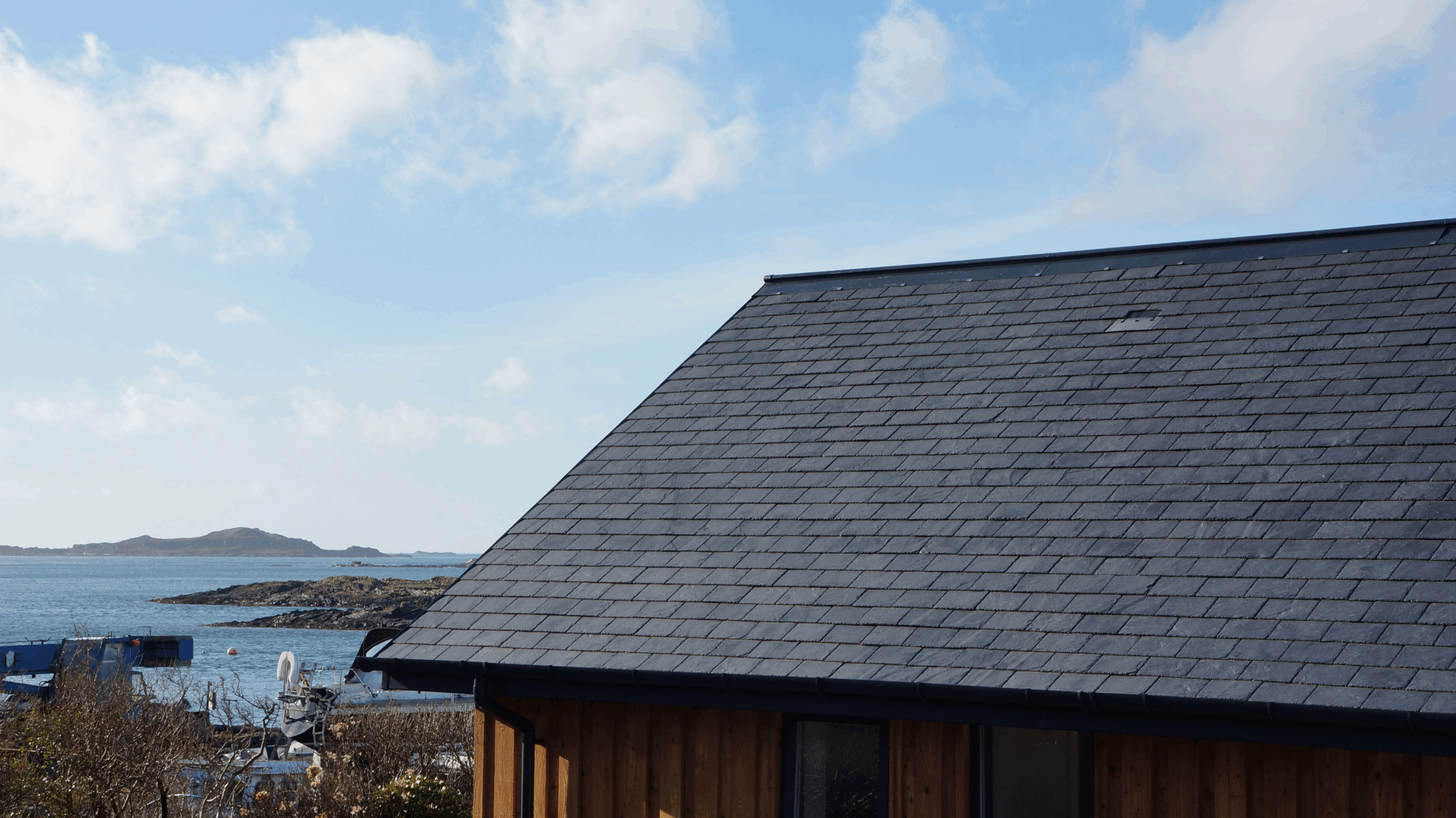 The Isle of Luing is one of the Slate Islands in the Inner Hebrides, in the west of Argyll in Scotland. Its charm lies in its natural beauty and unspoilt peaceful scenery looking out to the Inner Seas but is very exposed to the elements. Being coastal and located in BRE’s Wind Zone 4, properties need to be built with robustness and durability in mind.